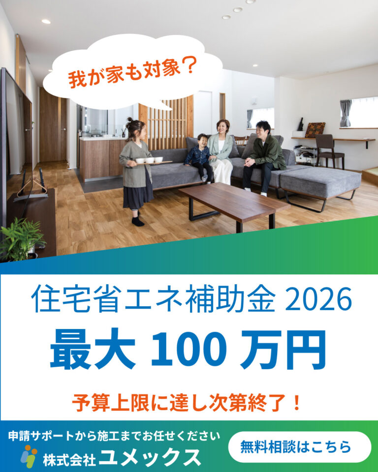 香川県で住宅リフォームをご検討中の方へ。2026年の住宅省エネ補助金で、窓の断熱・給湯器交換・断熱改修が対象予定です。予算上限に達し次第、受付終了の可能性があります。株式会社ユメックスが対象確認から申 … © […] -
